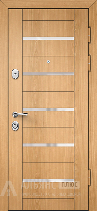 Фото 2 «Входная дверь в отделке дуб с зеркальной вставкой и молдингом №128»