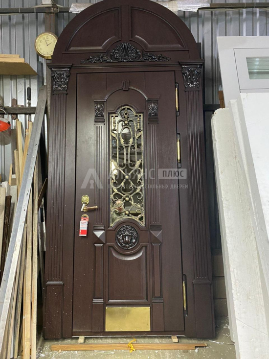 Для классического коттеджа или загородной резиденции чаще всего выбирают элитные модели: арочная дверь с фигурными элементами, дверь премиум с отделкой из массива, сложной фрезеровкой и коваными накладками. Но даже самая скромная на вид металлическая парадная дверь может выглядеть дорого и аккуратно за счет правильной расцветки, рельефа и фурнитуры – ручек, накладок, глазка и декоративных решеток на стекле.